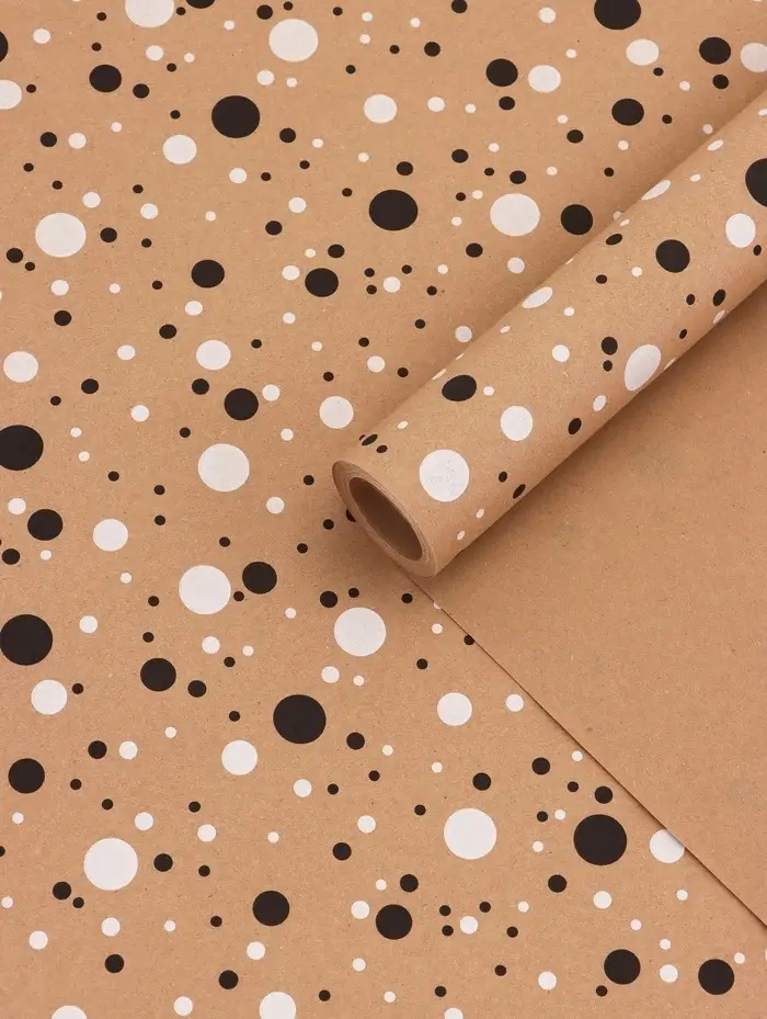 Крафт бумага «Конфетти» черный/белый на коричневом фоне, 0.72×10±5% м, 60 г