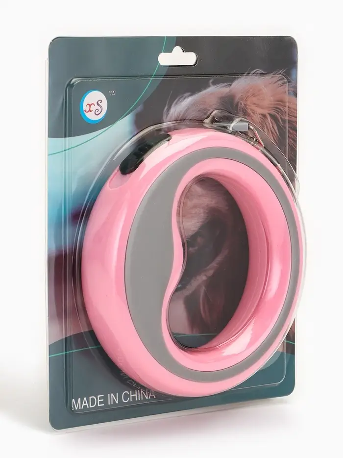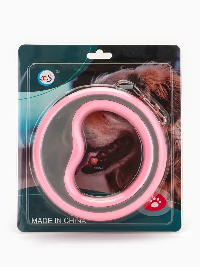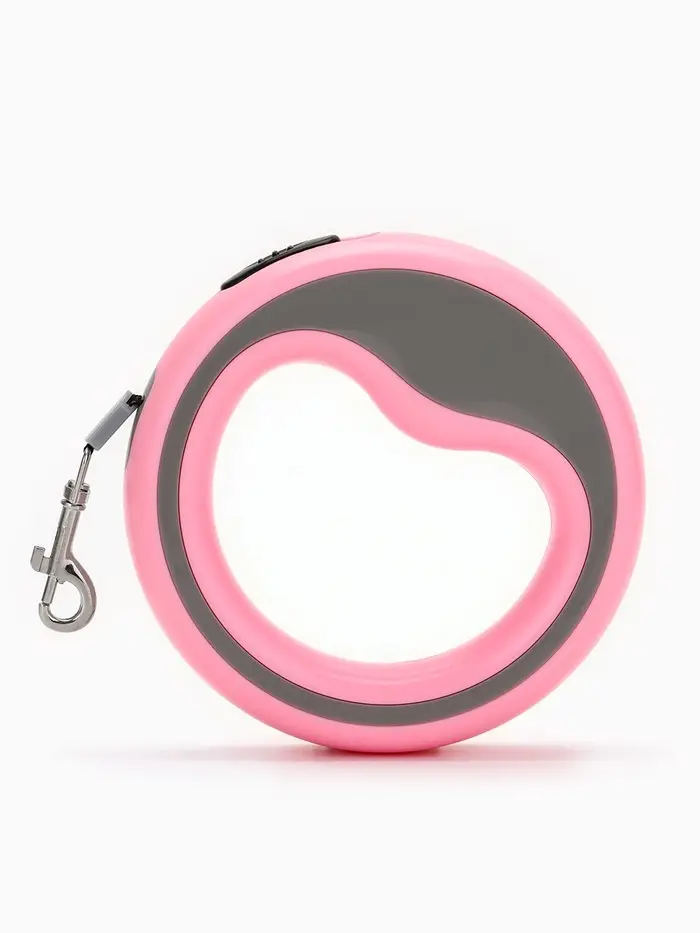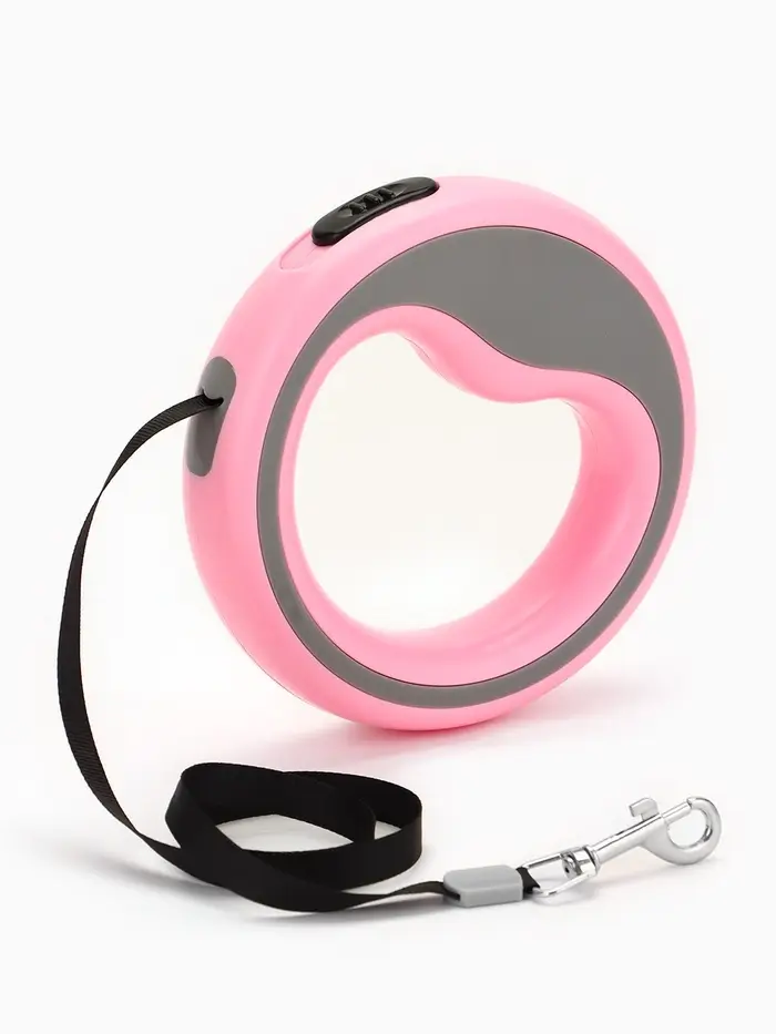 Рулетка - поводок для собак, лента 3 м, розовая/серая