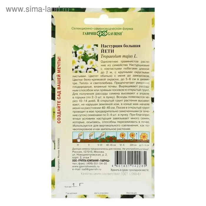 Семена цветов Настурция "Йети", ц/п, О, 1,0 г