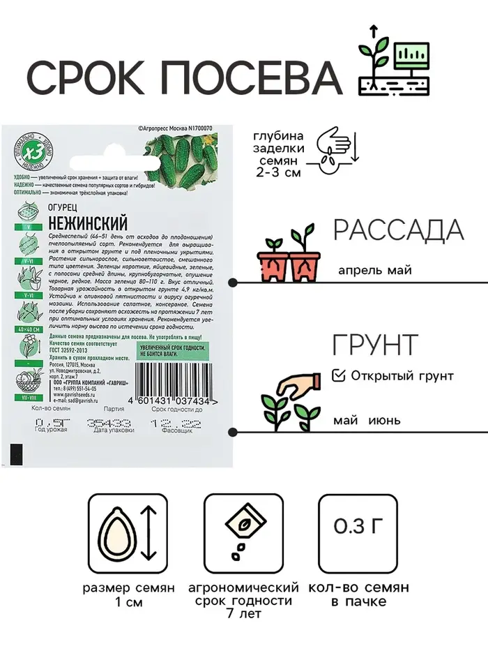 Семена Огурец "Нежинский", раннеспелый, пчелоопыляемый, 0,3 г серия ХИТ х3