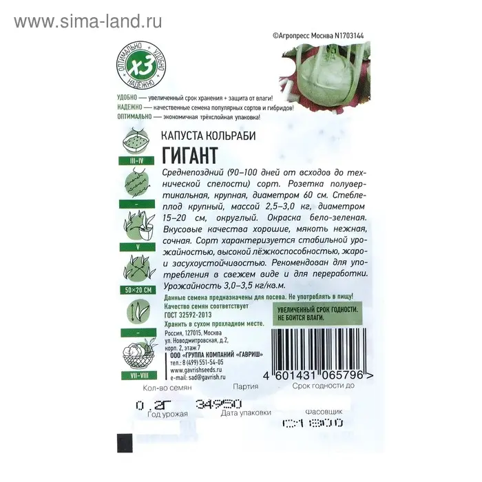 Семена Капуста кольраби "Гигант", ц/п, 0,2 г серия ХИТ х3