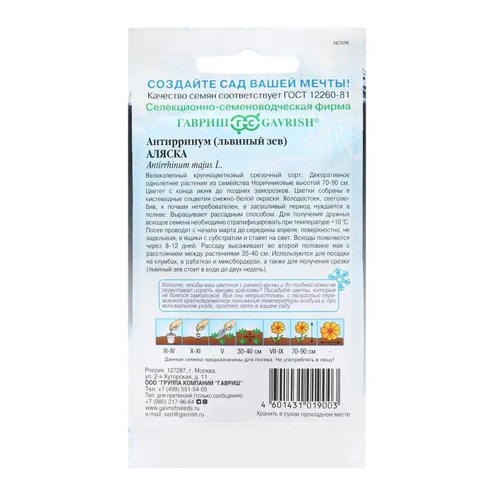 Семена цветов Антирринум (Львиный зев)"Аляска", ц/п, серия Устойчив к заморозкам, 0,05 г