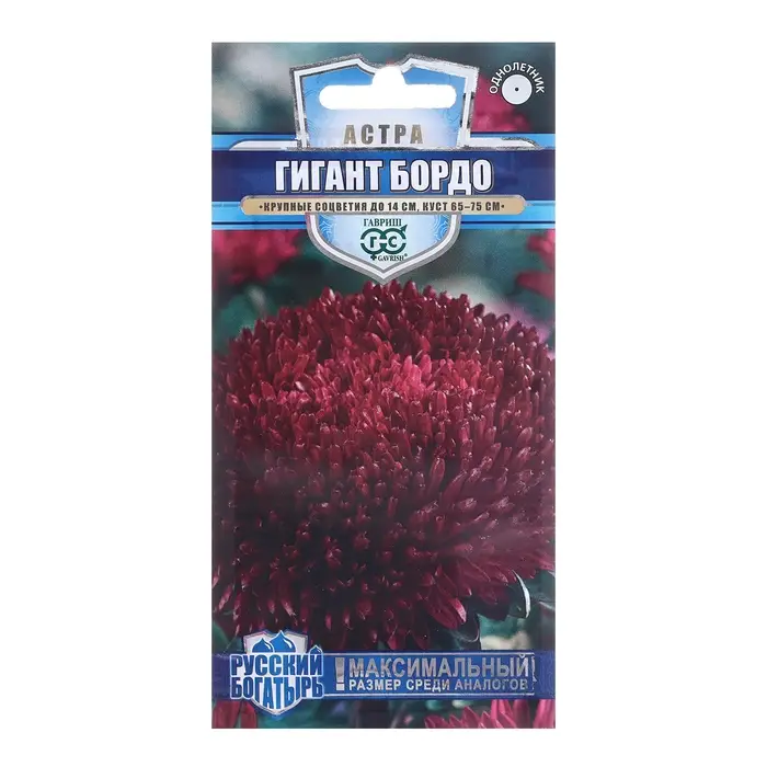 Семена цветов Астра "Гигант бордо", ц/п, однолетняя, серия Русский богатырь, 0,05 г