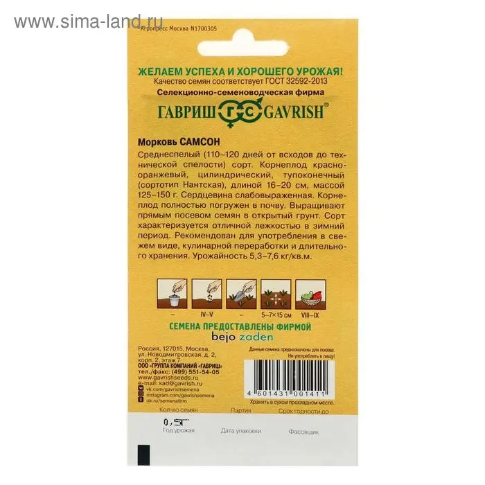 Семена Морковь "Самсон", 0,5 г