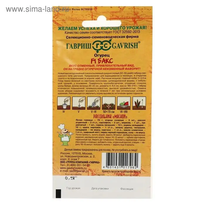 Семена Огурец "Бакс", F1, серия География, 0,5 г