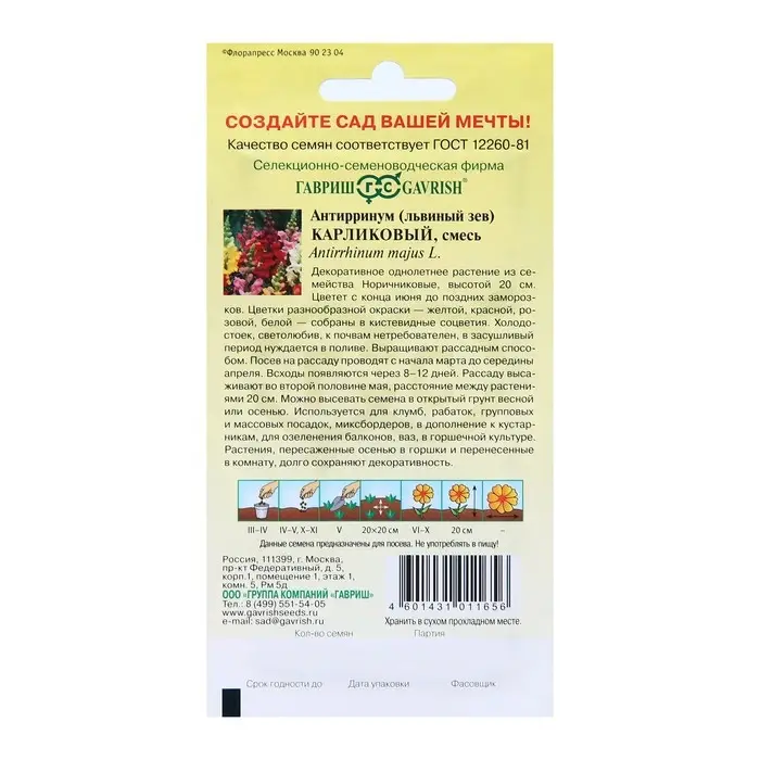Семена цветов Антирринум (Львиный зев) "Карликовый", ц/п, смесь, 0,05 г