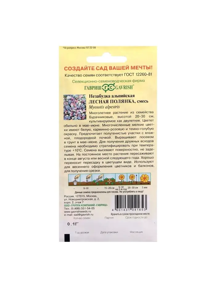 Семена цветов Незабудка "Альпийская смесь", Мн, 0,1 г