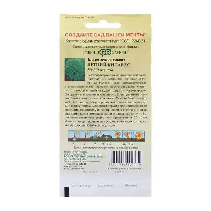Семена цветов Кохия веничная "Летний кипарис", ц/п, 0,3 г
