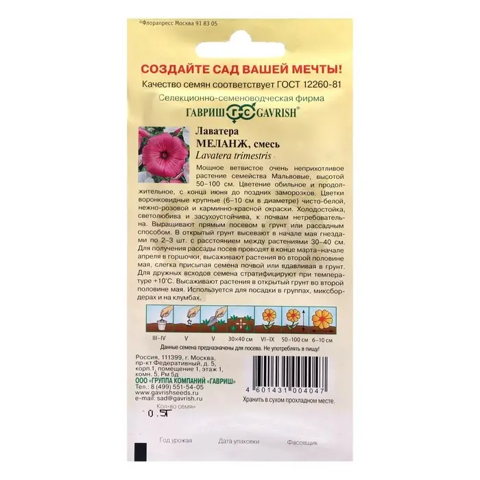 Семена цветов Лаватера "Меланж", ц/п, смесь, 0,3 г