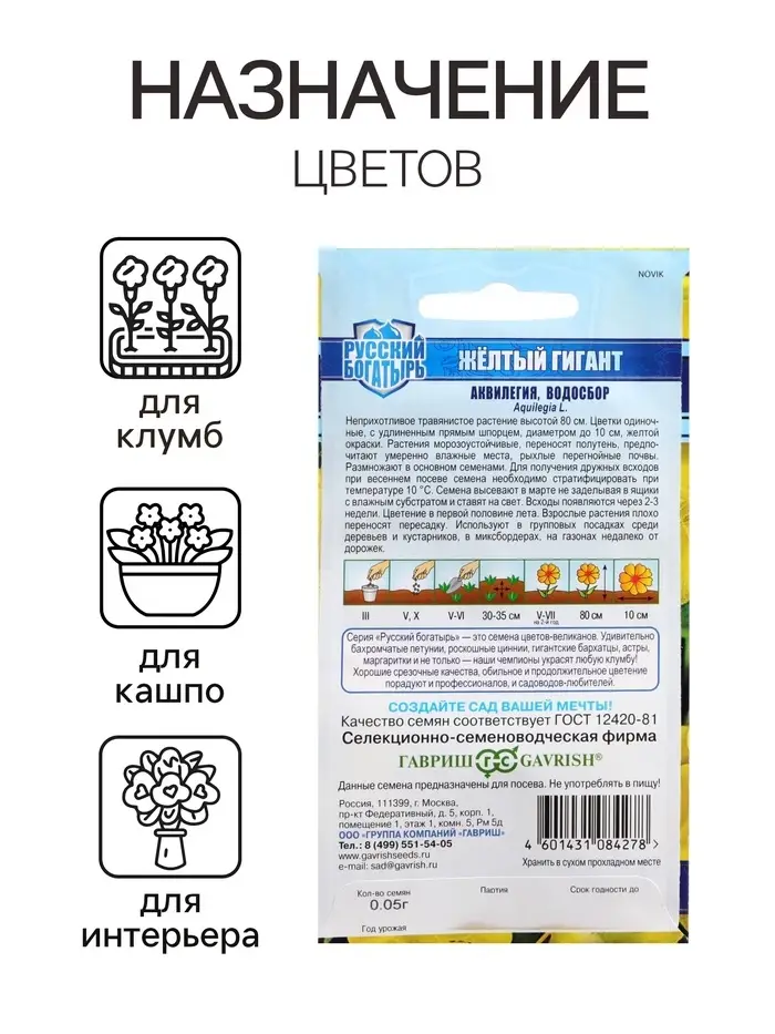 Семена цветов аквилегия «Желтый гигант», цветной пакет, 0.05 г