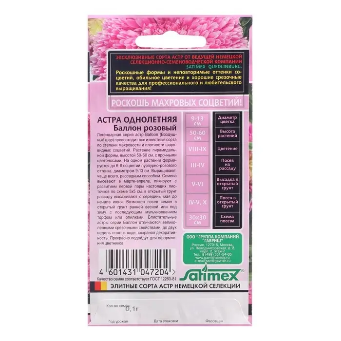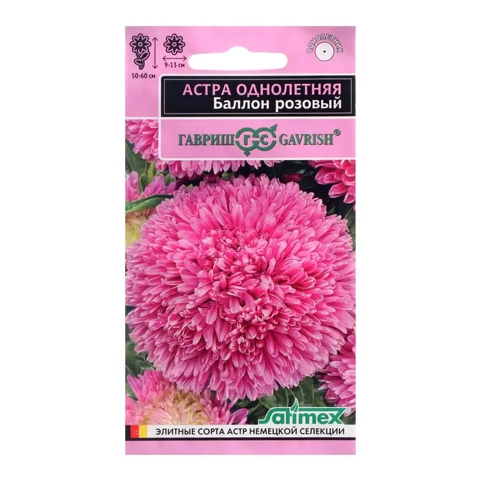 Семена цветов Астра густомахровая "Баллон розовый", ц/п, однолетняя, 0,05 г
