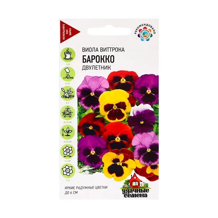 Популярное двулетнее растение из семейства Фиалковые высотой 25-30 см. Обильно и продолжительно цветет с мая по сентябрь. Цветки крупные (5-6 см в диаметре), бордово-коричневые с каймой различной окраски на верхних лепестках. Растение влаголюбивое, холодостойкое, хорошо растет на солнце и в полутени. Для получения растений, цветущих в год посева, выращивают через рассаду. При безрассадным способе выращивания цветение наступает на второй год. Используют для посадки на клумбы, рабатки, в балконные ящики и садовые вазы.