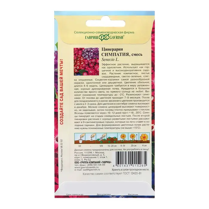 Семена Цинерария "Симпатия", ц/п, 8 шт.