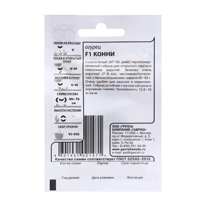 Семена Огурец "Конни", F1, 0,3 г б/п