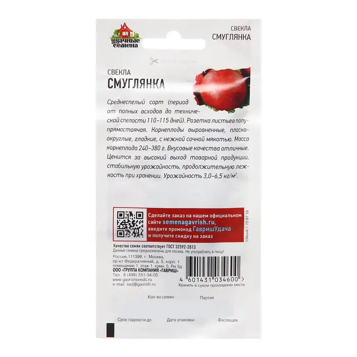 Семена Свекла "Смуглянка", ц/п, 2,0 г