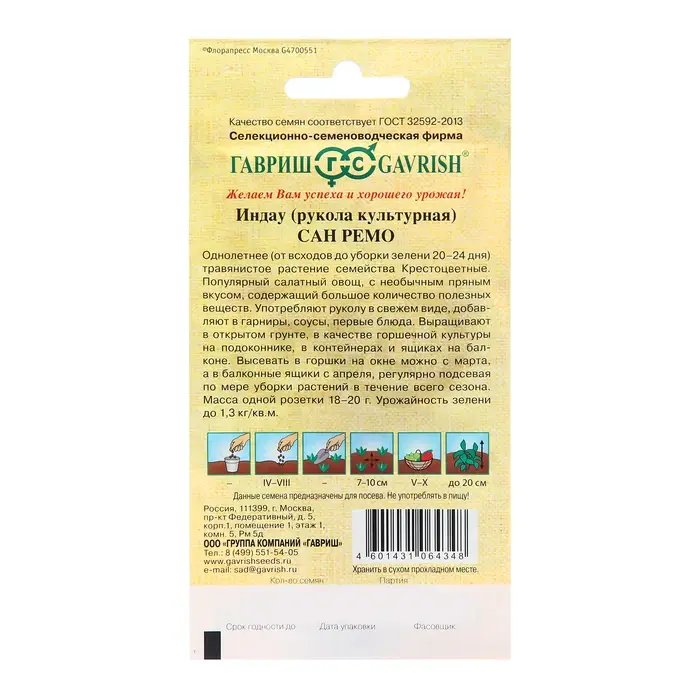 Семена Индау "Сан Ремо", ц/п, (Рукола), 1 г