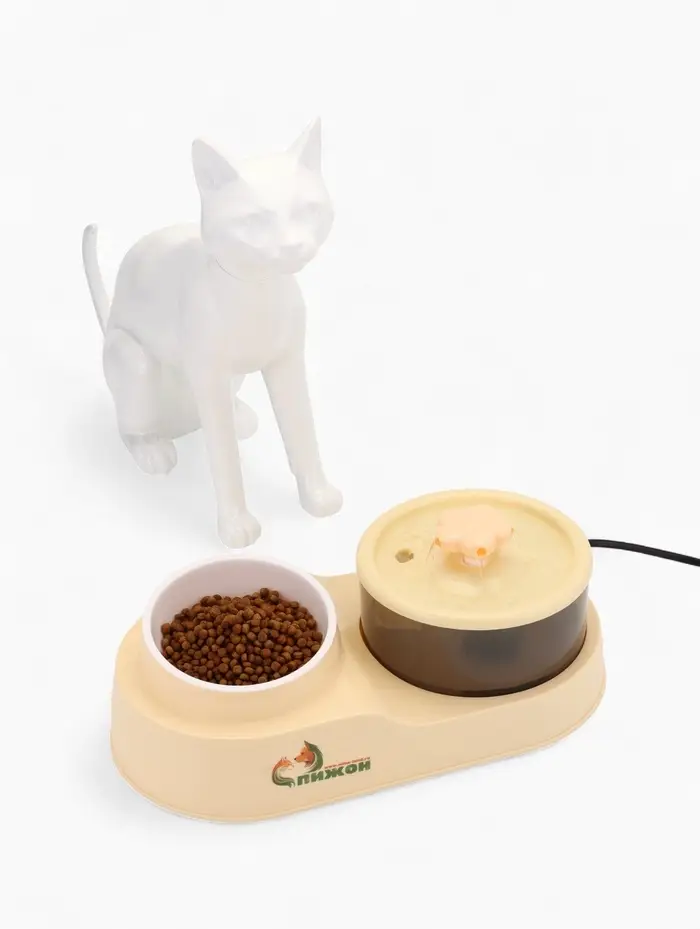 Фонтан для животных с миской, 34×17.5×11.5 см, бежевый