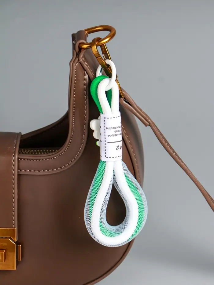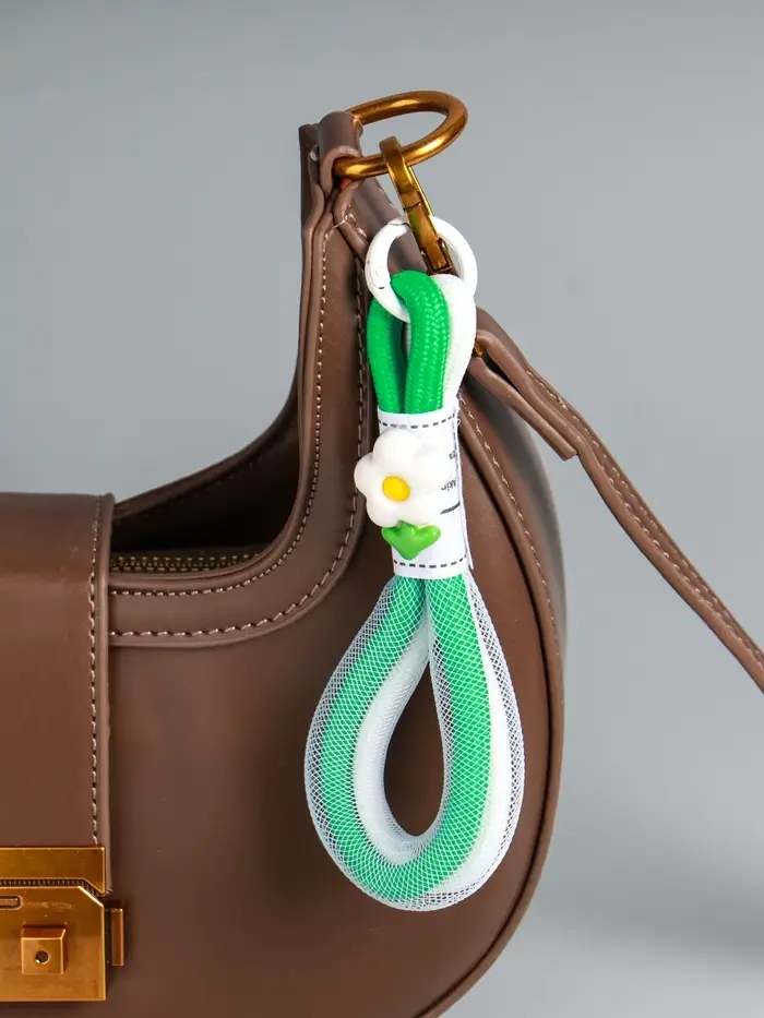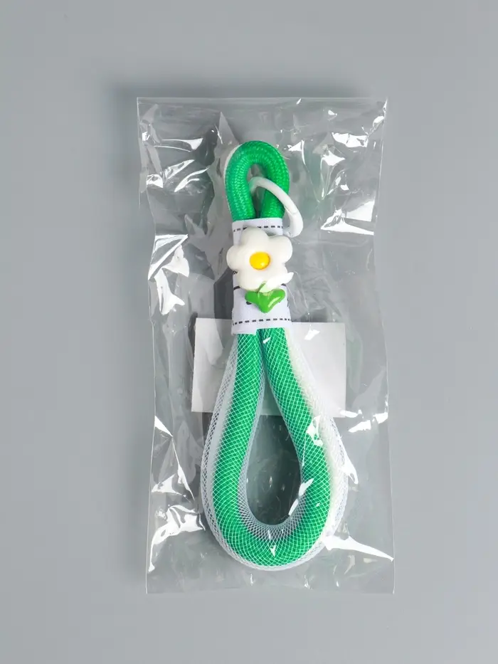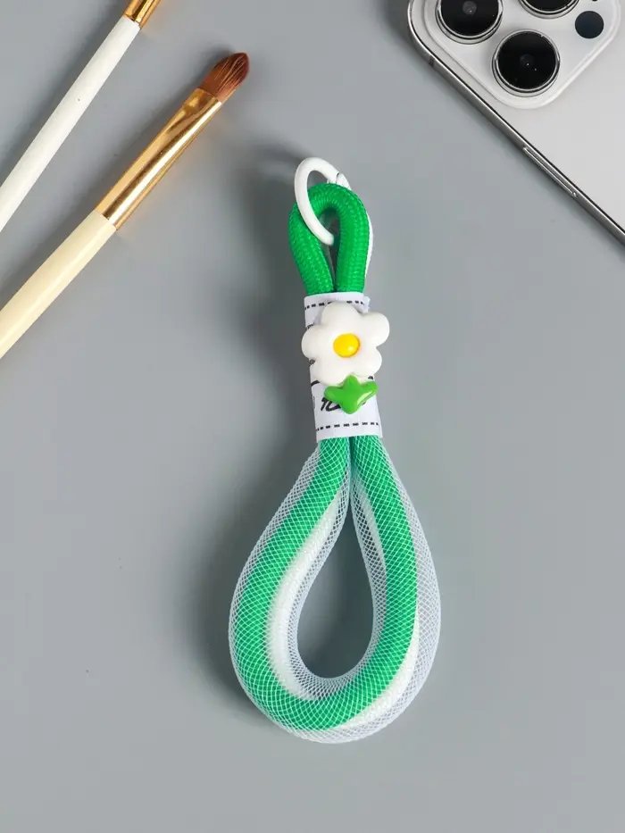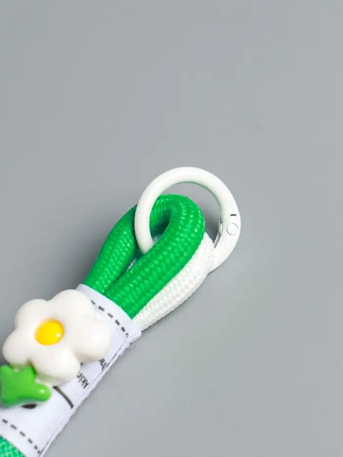 Брелок на карабине "Цветок. Шнур-сетка" двойной шнур 0,7 см бело-зелёный 14,5х2х1,7 см