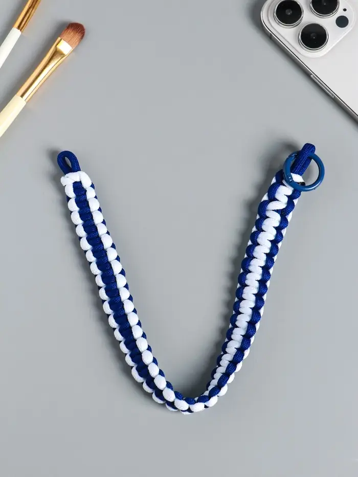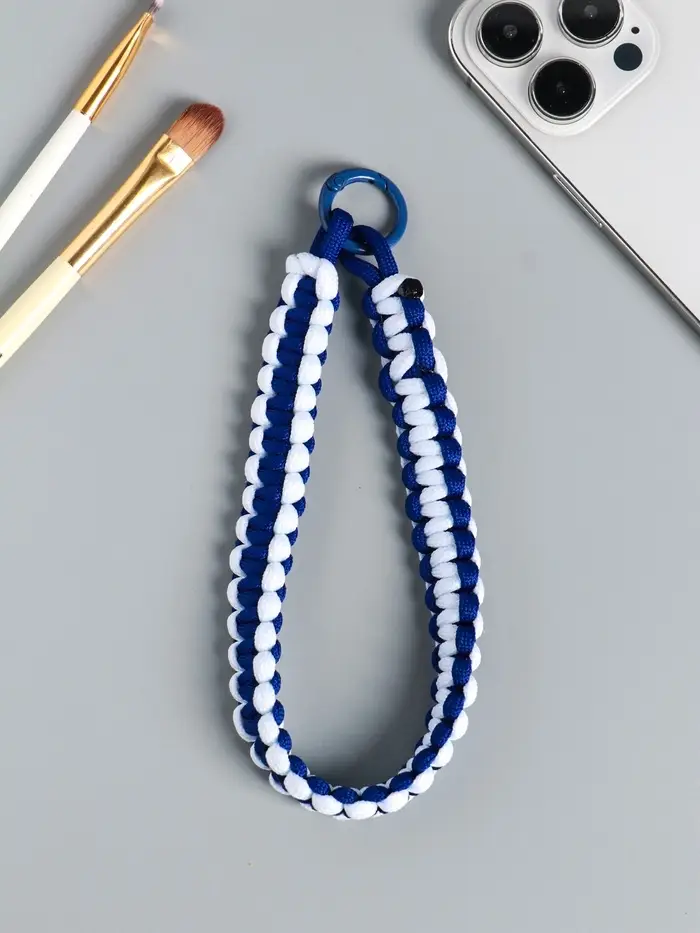 Брелок на карабине "Паракорд" шнур 0,5 см сине-белый 14,5х1,8х0,8 см