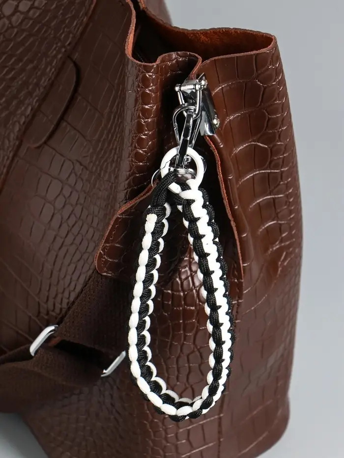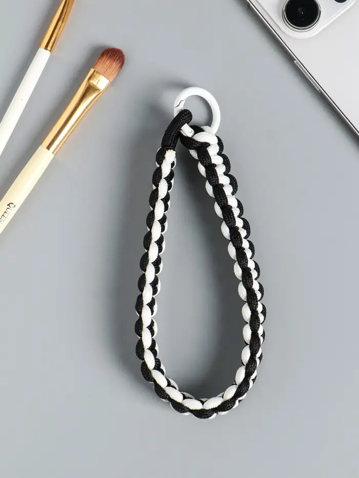 Брелок на карабине "Паракорд" шнур 0,5 см чёрно-белый 14,5х1,8х0,8 см