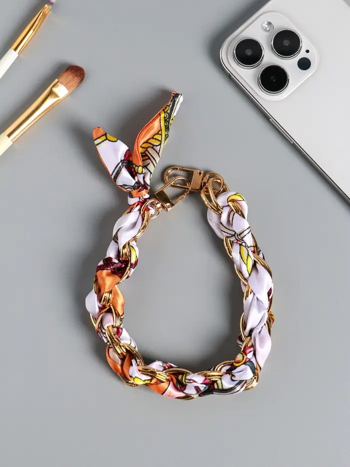 Брелок на 2 карабинах "Платок и цепочка" оранж 20х10х1,7 см