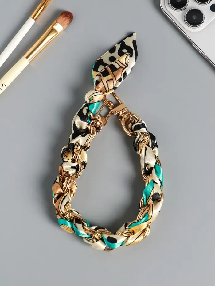 Брелок на 2 карабинах "Платок и цепочка" голубой 20х10х1,7 см