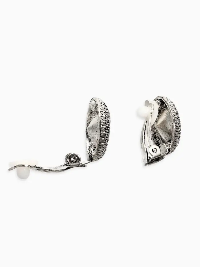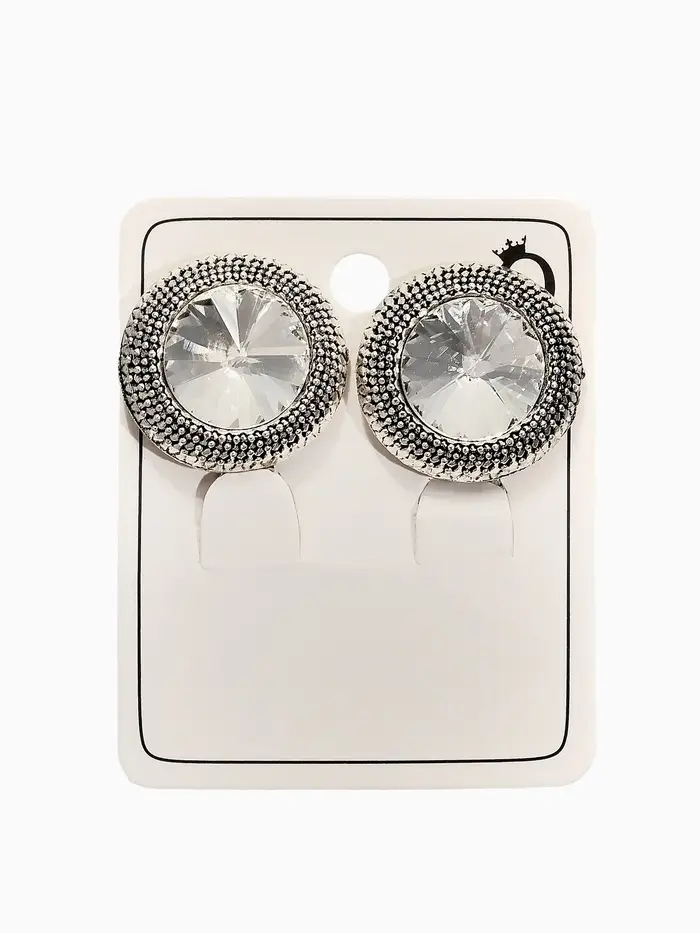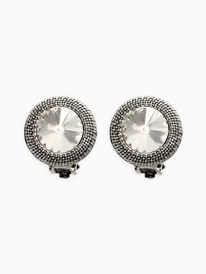 Клипсы "Винтаж" круг страз, цвет белый в чернёном серебре