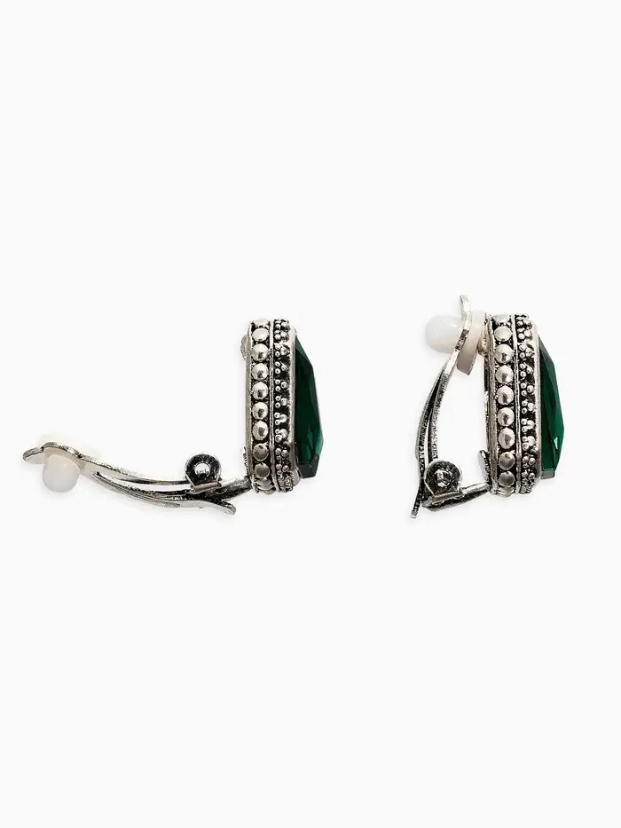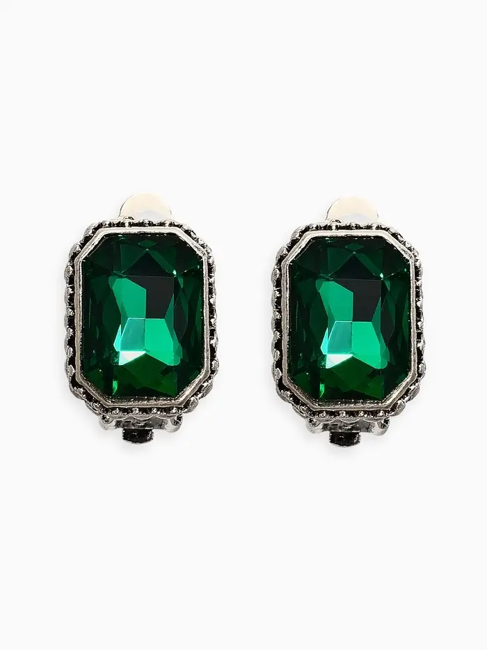 Клипсы "Винтаж" прямоугольник грань, цвет изумрудный в чернёном серебре