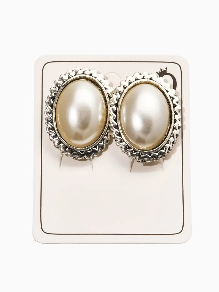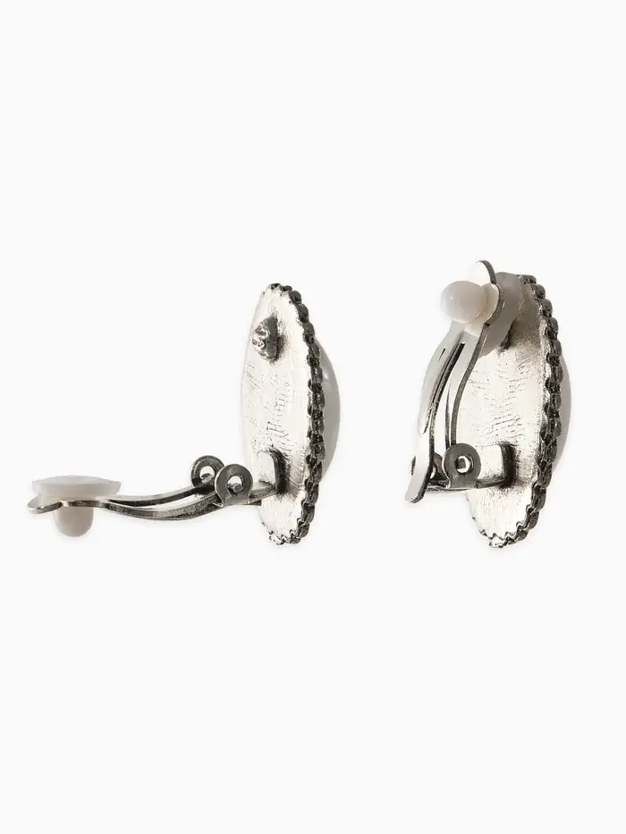 Клипсы "Винтаж" овал жемчуга, цвет белый в чернёном серебре