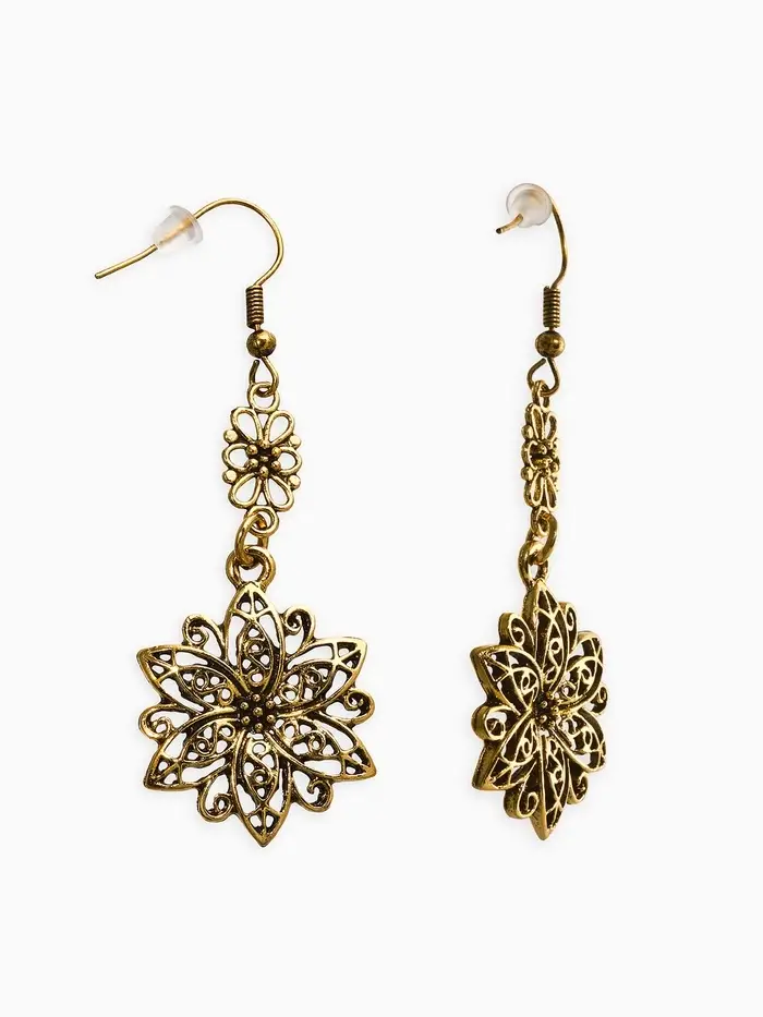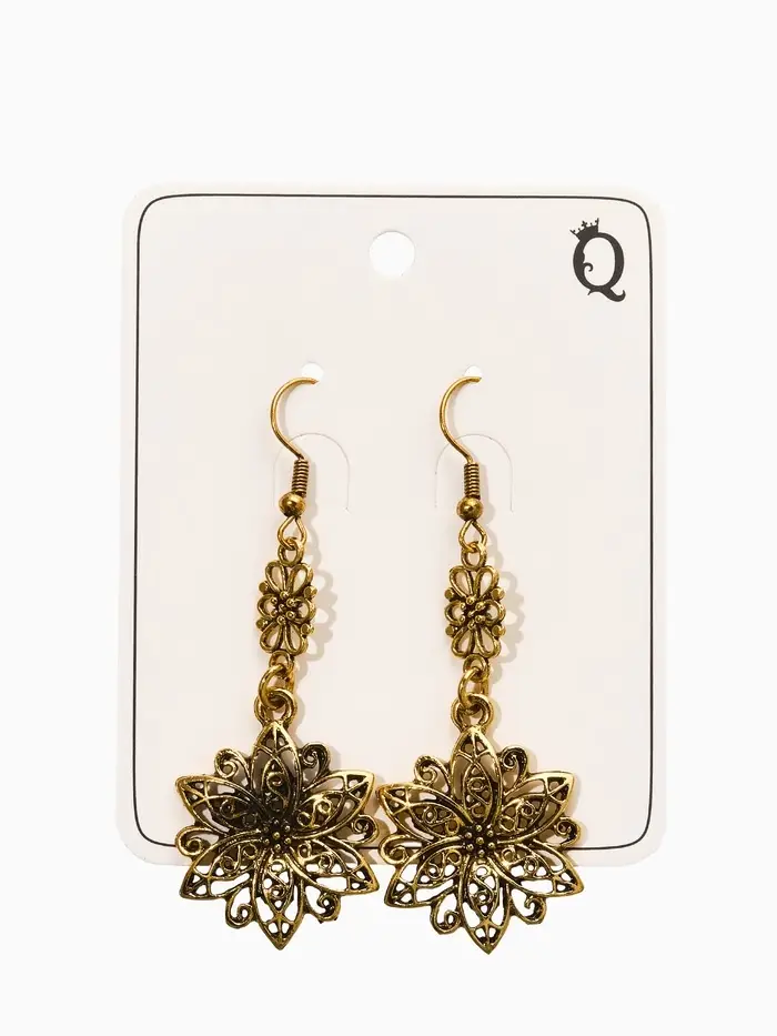 Серьги метал "Аутентичность" цветы, цвет чернёное золото