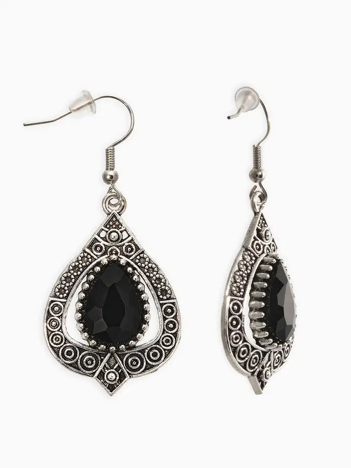 Серьги со стразми "Винтаж" капля, цвет чёрный в чернёном серебре