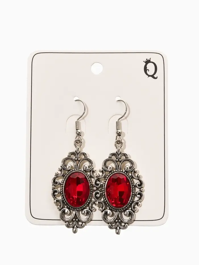 Серьги со стразми "Винтаж" овал ажурный, цвет красный в чернёном серебре