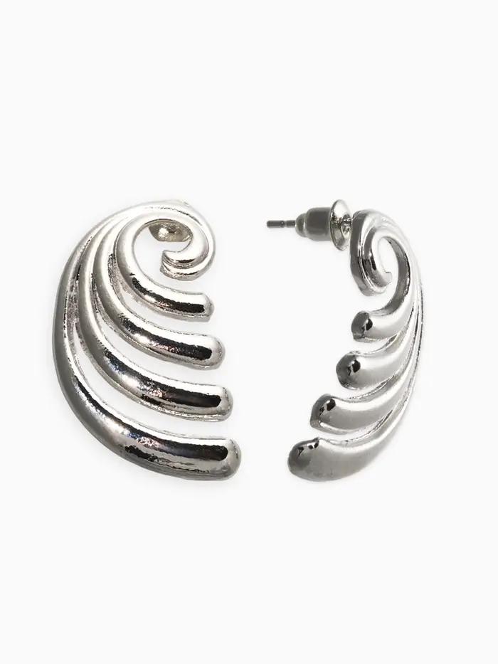 Серьги металл «Волна», цвет серебро