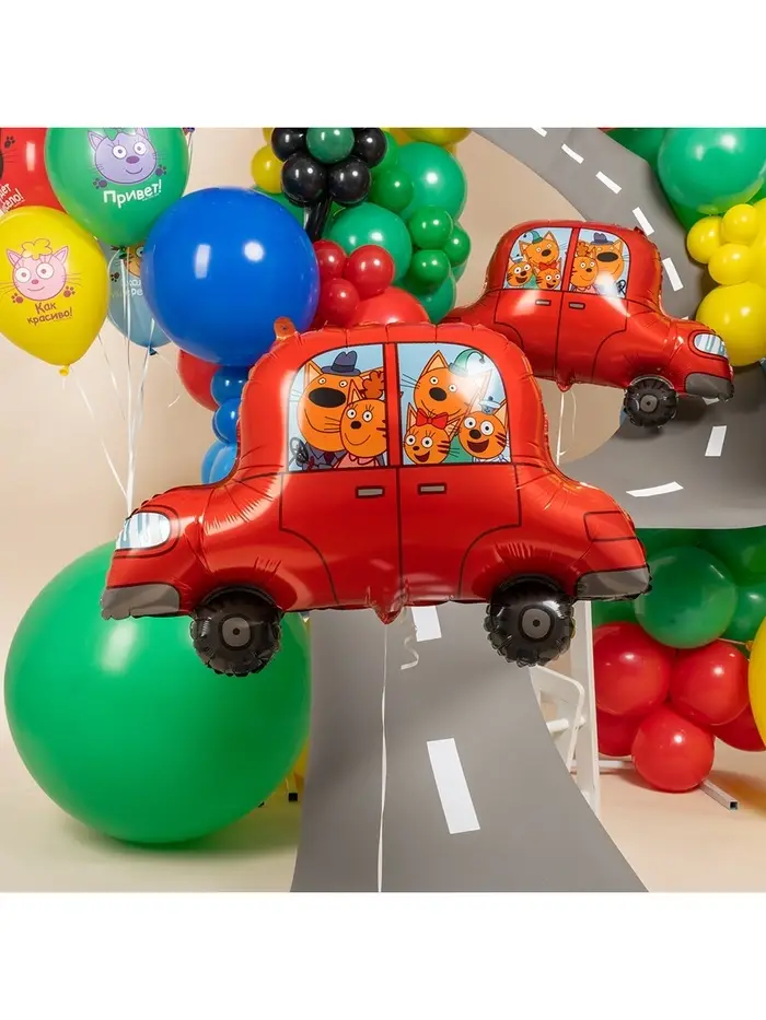 Воздушный шар фольгированный 30" «Три Кота, автомобиль»