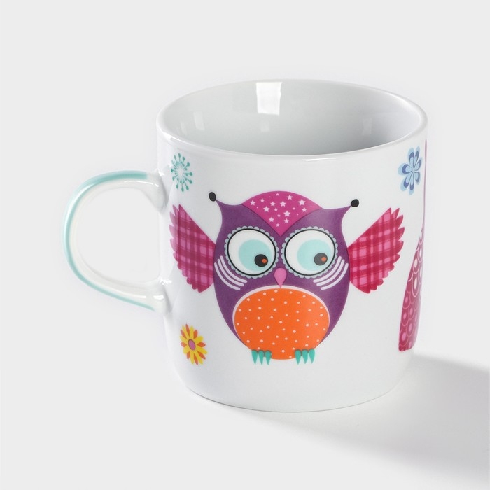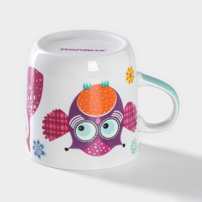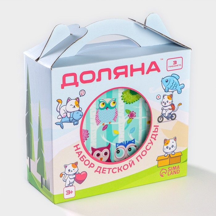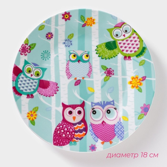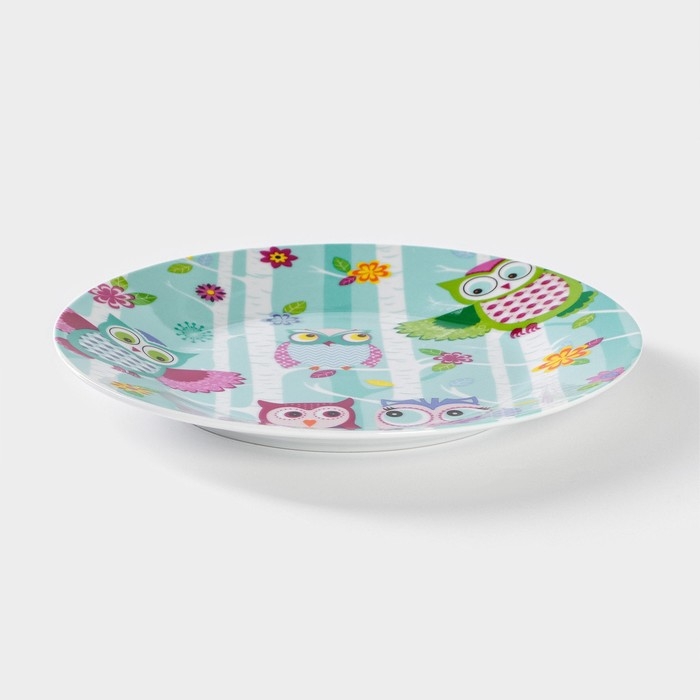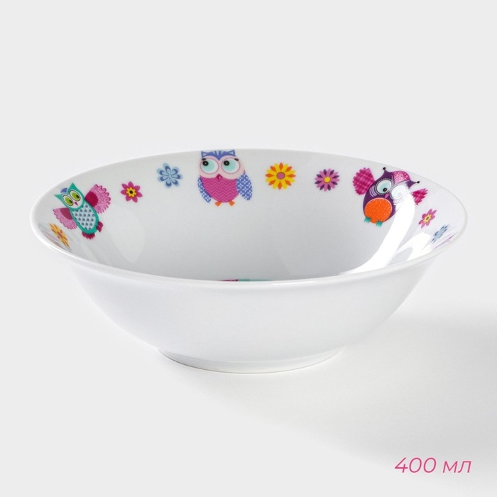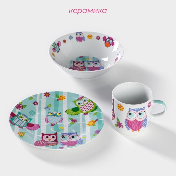 Набор детской посуды из керамики Доляна «Совушки», 3 предмета: кружка 230 мл, миска 400 мл, тарелка d=18 см, цвет белый