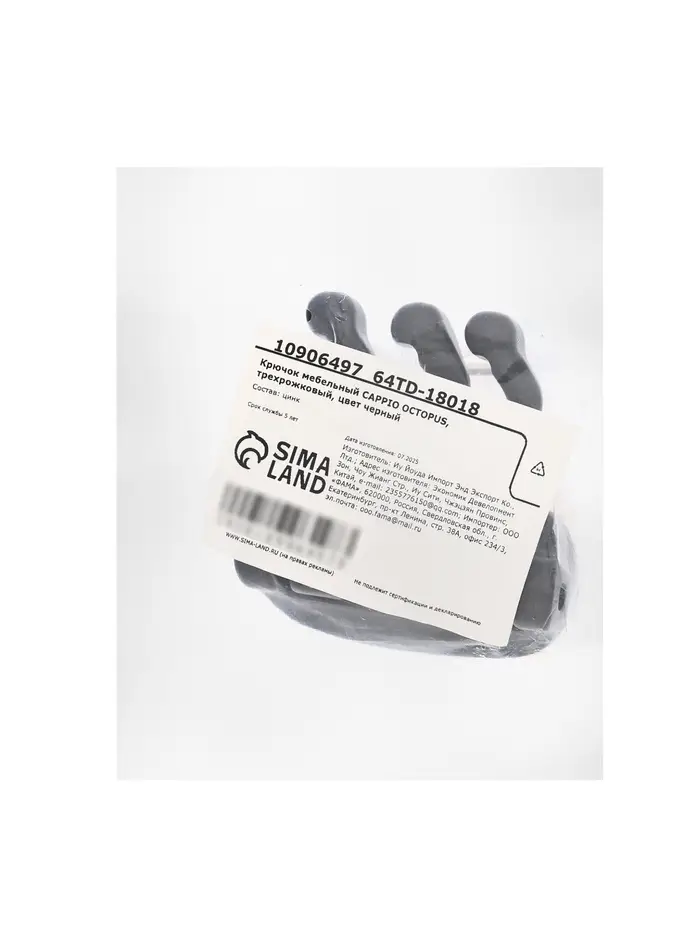 Крючок мебельный CAPPIO OCTOPUS, трехрожковый, цвет черный