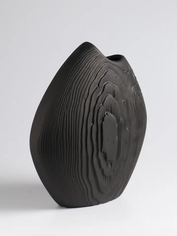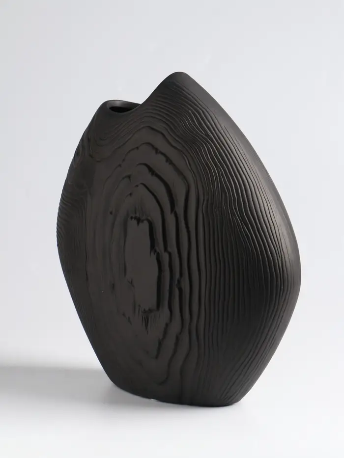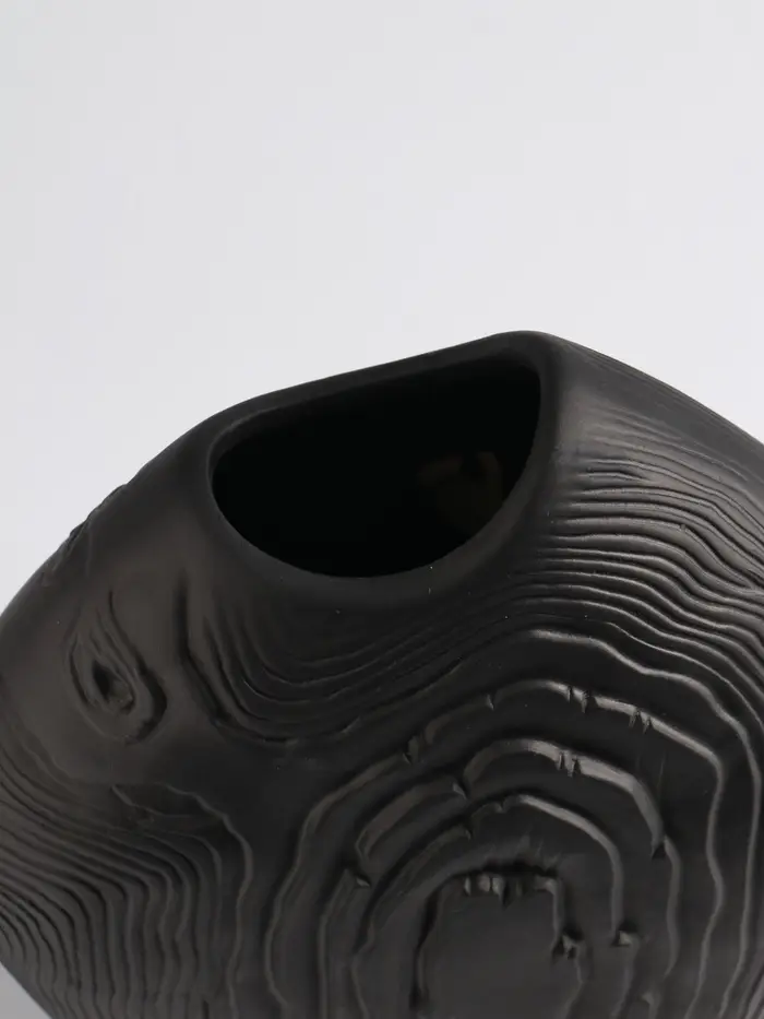 - Глубокий матовый чёрный: Ваза обладает насыщенным, благородным цветом. Матовая поверхность не отвлекает внимание, а подчеркивает красоту цветочных композиций.