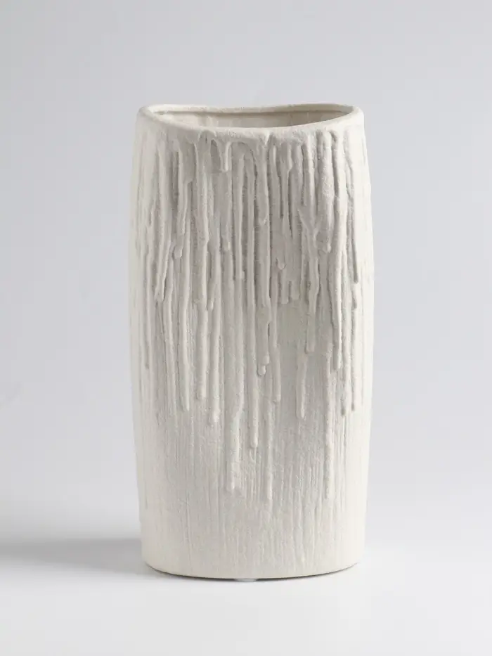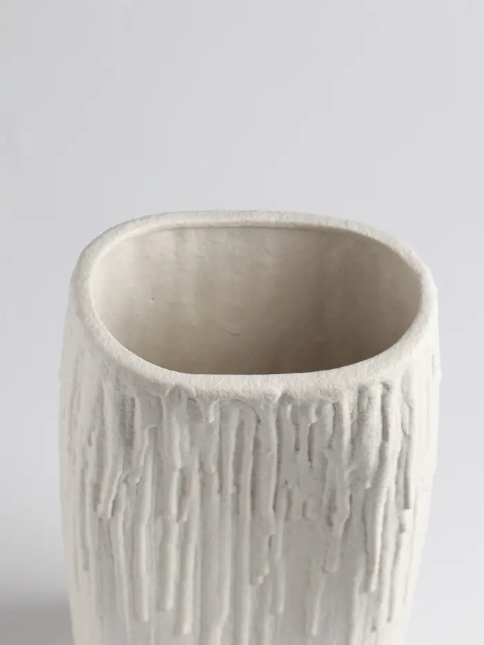 - Качественная керамика: Материал обладает приятной матовой поверхностью и интересным рельефом, он прочен и устойчив. Стенки вазы имеют достаточную толщину для устойчивости.