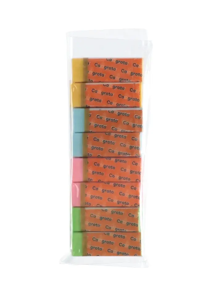 Набор 8 штук ластиков прямоугольных Пастельные МИКС, в бумажном держателе (штрихкод на штуке)