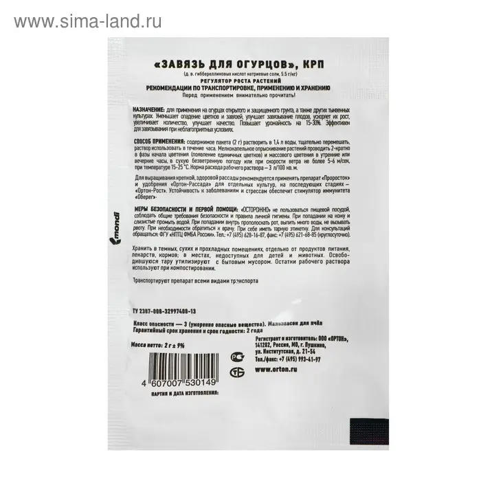 Применение:растворить 2 г препарата в 1,4 л воды. Опрыскивание производить в фазах начала цветения (появления единичных цветков) и массового цветения.