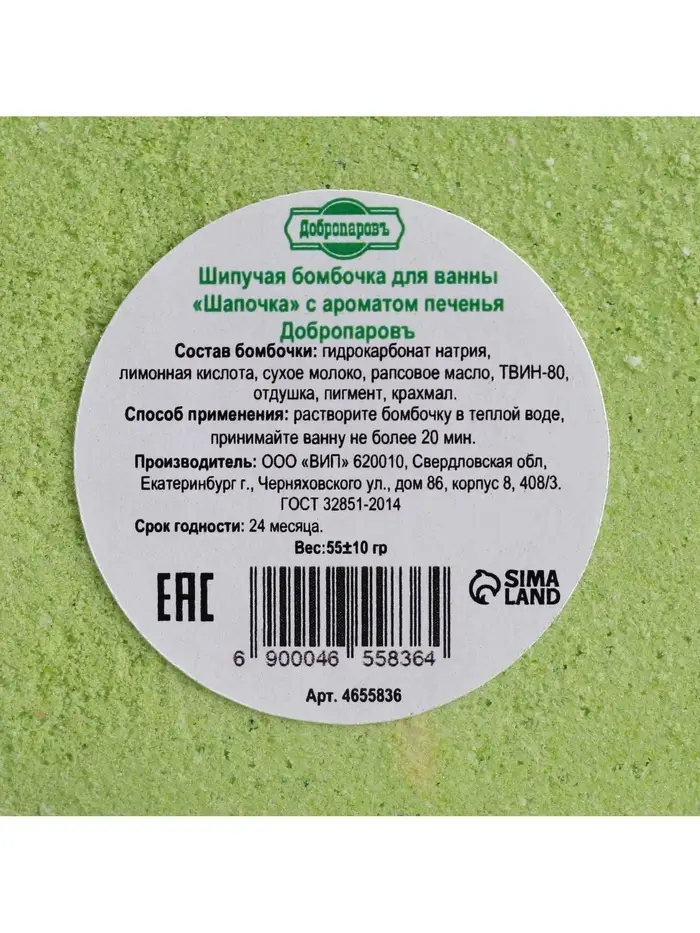 Бомбочка для ванн "Шапочка" с ароматом печенья, 55 г