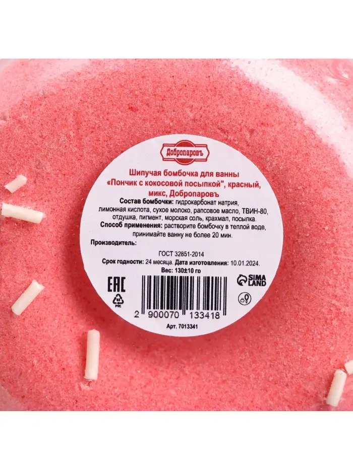Бомбочка для ванн "красный пончик с кокосовой посыпкой" 85 г
