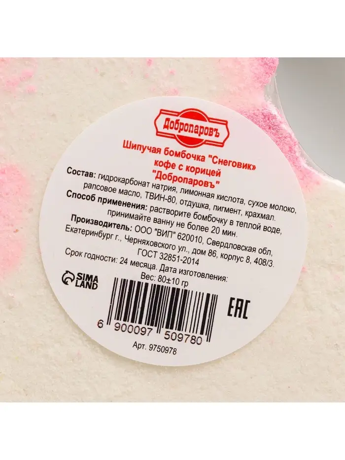 Бомбочка для ванн "Снеговик" кофе с корицей, 80 г