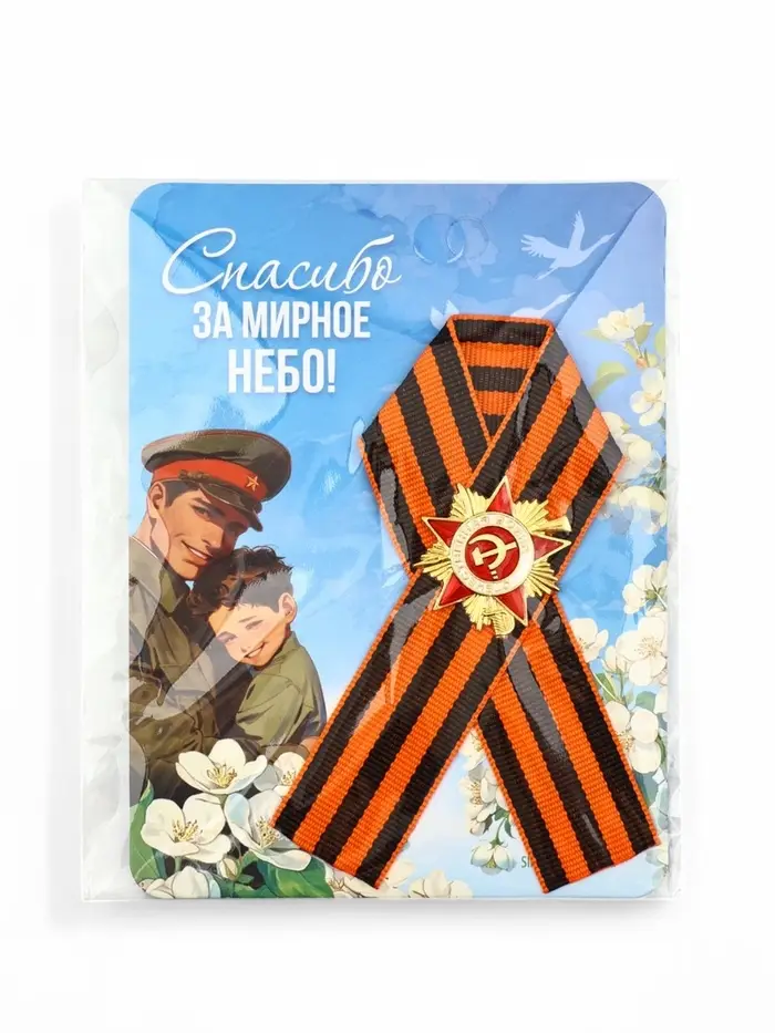 Значок с георгиевской лентой на 9 Мая «Спасибо за мирное небо!», 10.5×14 см