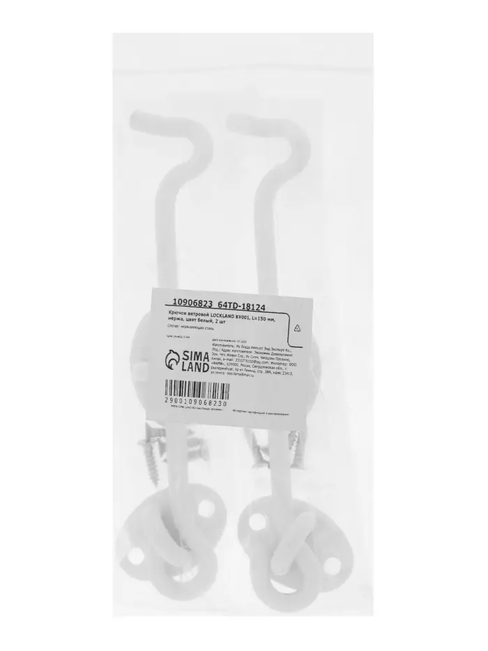 Крючок ветровой LOCKLAND KV001, L=150 мм, нержа, цвет белый, 2 шт