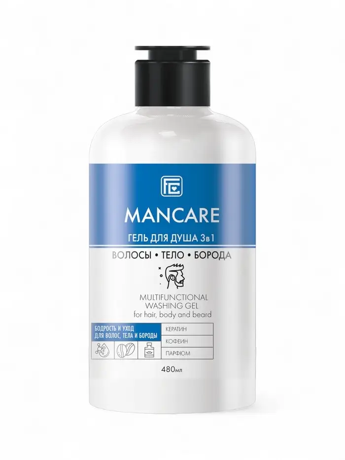 Гель мужской для волос, тела и бороды GLOWCARE бодрость и энергия, 480 мл