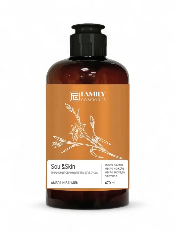Гель для душа парфюмированный Soul&Skin амбра и ваниль, 470 мл