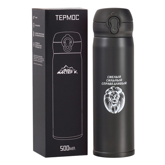 Термос "Мастер К" - это стильный аксессуар и отличный подарок на новый год, другу, подруге, брату, сестре, девушке, папе, маме, мужу, жене, бабушке и дедушке на день рождения, 23 февраля, 8 марта, 14 февраля.