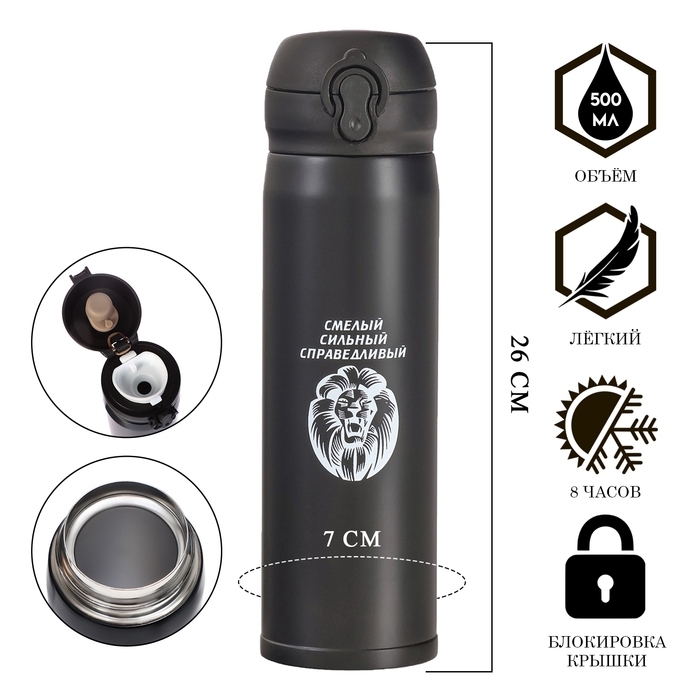 Термос, 500 мл, Топ "Лев" 500 мл сохраняет тепло 8 ч 7 х 26 см