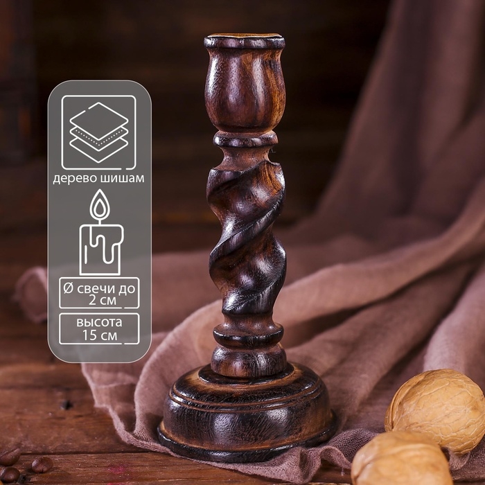 Подсвечник "Винтаж" дерево 6,5х6,5х15 см